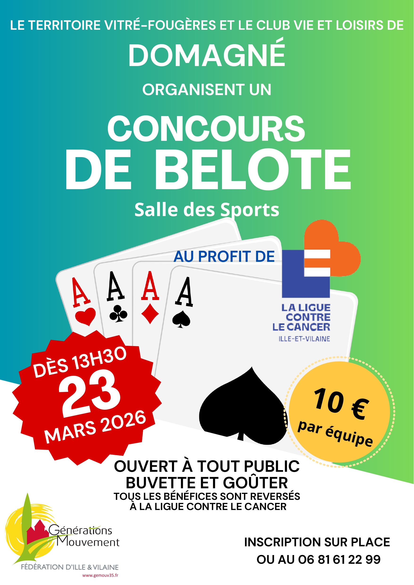 Club Vie et Loisirs - Concours de belote 23 mars 2026